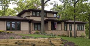 One of the characteristics adamantly applied by Frank Lloyd Wright was the use of local materials and transitional planting to integrate the home with it’s surroundings. It was also traditional practice to incorporate furnishings and ceramic pottery that lends itself to the craftsman style like furniture by Stickley- http://en.wikipedia.org/wiki/Gustav_Stickley.